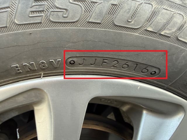 赤枠の部分にタイヤの製造年が記載されていて